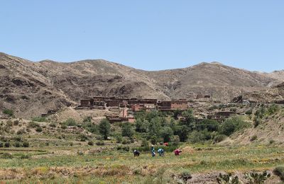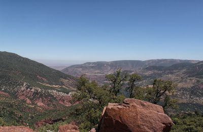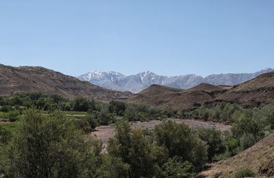 Die Strecke ist sehr reizvoll und abwechslungsreich. Nach dem ersten Anstieg bietet sich uns ein schöner Blick zurück auf Marrakesch und die umliegenden Täler. Im weiteren Verlauf präsentieren sich uns immer wieder neue Landschaften, mal grüne, satte Täler, mal karge, unbewachsene Felsformationen. Die Farben des Gesteins erscheinen abwechselnd in rot, braun, grün oder schwarz.