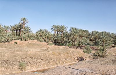 Kurz hinter Agdz nehmen wir eine kleine Seitenstraße, die parallel zur N9 verläuft und uns über eine brüchige Betonbrücke auf die andere Seite des Draas führt. Mitten durch die Palmenhaine fahren wir bis zu dem Ort Tamnougalt, der heute noch in einem sehr ursprünglichen Zustand zu bewundern ist. Sehenswert ist auch die Kasbah des Ortes, die bereits als Kulisse für verschiedene Spielfilme gedient hat, zuletzt für die französische Produktion Aladdin, worauf man hier natürlich sehr stolz ist.