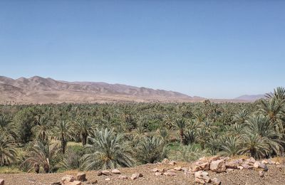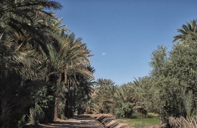 Immer am Fluß Draa entlang bieten sich uns herrliche Ausblicke auf die ausgedehnten Palmenoasen. Überhaupt ist die Gegend hier am Draa äußerst fruchtbar und wir erfahren von Einheimischen, dass fast zu jeder Jahreszeit hier geerntet werden kann. So gibt nahezu jeder Monat eine Frucht her, z.B. Datteln, Feigen, Orangen oder Aprikosen.