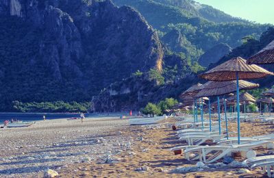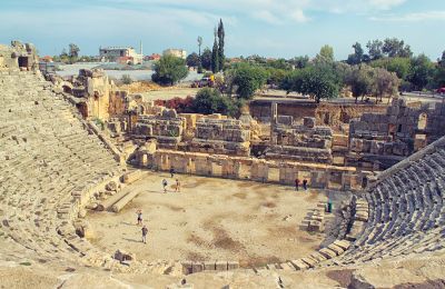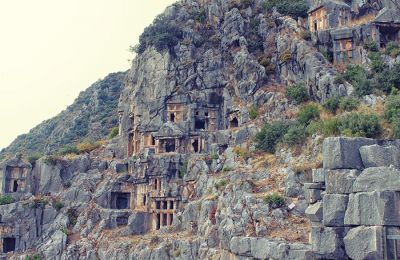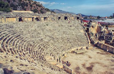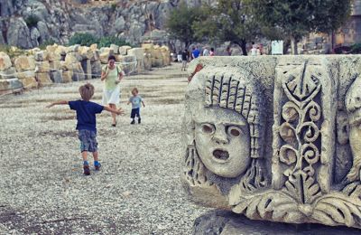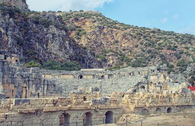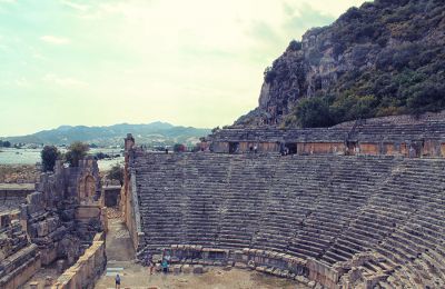 Ausflug zur antiken Stadt Myra (Demre), ca. anderthalb Stunden Autofahrt entfernt von Olympos. Hier war der heilige Nikolaus als Bischof tätig! Das große Amphitheater ist sehr gut erhalten und die Felsengräber im Berg einmalig gelegen. Der Ausflug lässt sich gut mit einem Marktbesuch in Kumluca verbinden (liegt auf dem Weg, man kommt direkt am Markt vorbei, wenn man durch Kumluca in Richtung Finike weiterfährt).