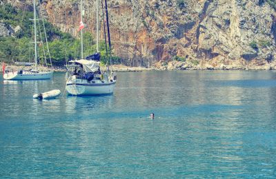 Bootstouren werden von Hotels wie dem Hotel Aida, aber auch von Anbietern direkt am Strand angeboten. Wenn man Glück hat, ist man ein kleines Grüppchen und kann Einfluss auf das Programm nehmen. Oder man tut sich gleich als Gruppe zusammen. Die Tour geht morgens los und endet am Nachmittag und hat einiges zu bieten: verschiedene Buchten, Schwimmen auf offenem Meer, gegrillte Dorade mit frischem Salat und zum Nachtisch Melone. Mit etwas Glück sieht man Meeresschildkröten. Beim ersten Mal habe ich mich richtig erschrocken, als mir auf offener See aus ca. zehn Metern Entfernung ein ziemlich großer Schildkrötenkopf entgegenblickte. Ich habe das Tier dann noch unter Wasser verschwinden sehen. Ihr Durchmesser war etwa ein Meter!