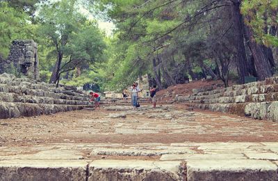 Zum einen ist Phaselis sehr reizvoll auf einer Halbinsel zwischen Kemer und Cirali gelegen und lohnt sich schon deshalb als Ausflugsziel, weil man hier im flachen Wasser gut mit Kindern zumindest die Beine erfrischen kann. Der Hauptgrund des Ausflugs nach Phaselis dürfte aber die erstaunlich gut erhaltende antike Stadt sein, mit gut erhaltener Prachtstraße, Amphitheater und vielen unterschiedlichen Gebäuden wie z.B. Badehäusern. Das Ganze nicht zu geleckt und auch überhaupt nicht überfüllt (wenn man mal von den nur kurz und scharenweise einfallenden Ausflugsdampfern aus Kemer absieht, die sich aber glücklicherweise nicht näher für Phaselis interessieren, sondern meist nur vom Meer aus einen kurzen Blick erhaschen und damit ihr kulturelles Programm abgehakt haben), sondern urig mitten in der Natur gelegen und zum Teil überwuchert. Sehr, sehr idyllisch, um den ganzen Tag hier zu verbringen, am besten kombiniert mit einem Forellenessen im nahe gelegenen Ulupinar.