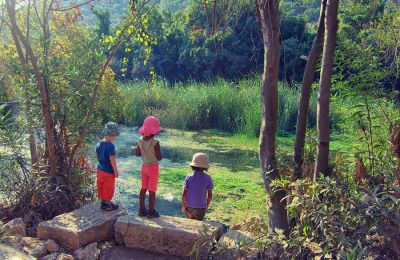 Milan hat die Idee, mit mir alleine zu Fuß vom Strand in Cirali bis hoch nach Olympos zu laufen. Ich habe große Lust, die Strecke zu laufen, auch mit ihm, habe zunächst aber Bedenken, ob er das (ohne zu quengeln und dass ich ihn tragen muss) schafft. Andererseits kann man einem 5-Jährigen nicht auch mal eine 1-1 1/2 stündige Wanderung zutrauen, wenn er es soger selbst vorschlägt? Ich vergewissere mich also ungefähr 10 Mal, ob er wirklich Lust hat, fit ist, etc, und dann marschieren wir los, den Strand entlang nach Olympos bis zum Fluss, die Ruinen hoch, immer am Flusslauf entlang, bis zum oberen Eingang der historischen Stätte, wo Andi und Mato uns mit dem Auto abholen. Nicht nur für Kinder gibt es auf dieser Wanderung viel zu entdecken. Klar, die Ruinen interessieren einen 5-Jährigen noch nicht so sehr, dafür aber Land- und Wasserschildkrören, Frösche, rote Libellen, ein Insekt mit gelb-schwarz gestreiften Beinen... die Wanderung ist ein voller Erfolg für uns beide!