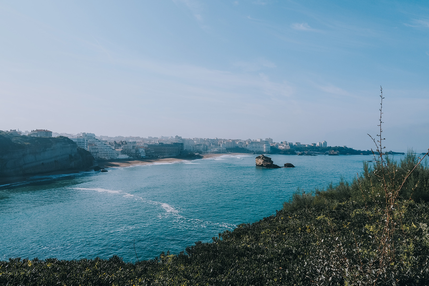 Wenn man von Norden kommt, entdeckt man zuerst den Leuchtturm von Biarritz hoch oben auf der Klippe. Den unrunden wir zunächst einmal und blicken dann in die andere Richtung auf die Bucht, über der hoch oben auf den Klippen herrschaftlich Biarritz, das schon früh anerkanntes Seebad war, thront. Wir parken mitten in der Stadt in der Nähe der schönen Markthalle, die ihr nicht hungrig betreten solltet. Hier gibt es nämlich sehr viele Leckereien, die wir mitnehmen und auf einer Bank mit Meerblick genießen. Zum Nachtisch ein sehr leckeres Eis aus einer Eisdiele, die do köstliche Sorten wie Crème Brûlée und gesalzener Karamellbutter anbietet. Wir flanieren zum Alten Hafen, passieren die imposante Kathedrale und werfen einen Blick auf den vorgelagerten Rocher de la Vierge. Auf dem Weg zurück zum Markt und Parkplatz machen wir noch einen kleinen Schaufensterbummel. Die Mischung aus Künstlergalerien, heimischen jungen Surflabels und Designerläden ist spannend.