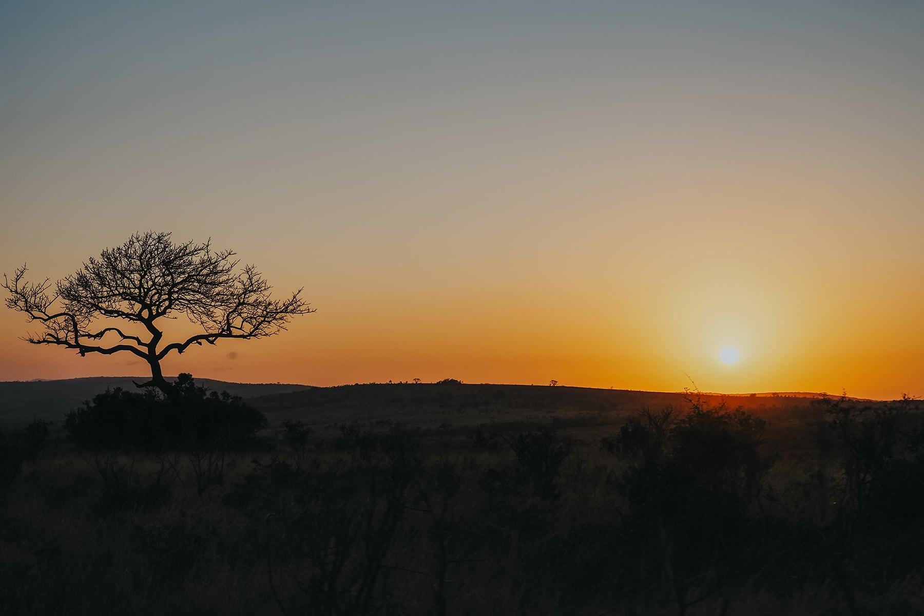 Der hügelige Park ist auch im Winter ziemlich grün und Heimat der Big Five, die wir nun hoffen zu sehen. Falls ihr euch übrigens fragt, wie man den Namen des Parks ausspricht: Wir haben es uns mit „Schluschluwi“ gemerkt.