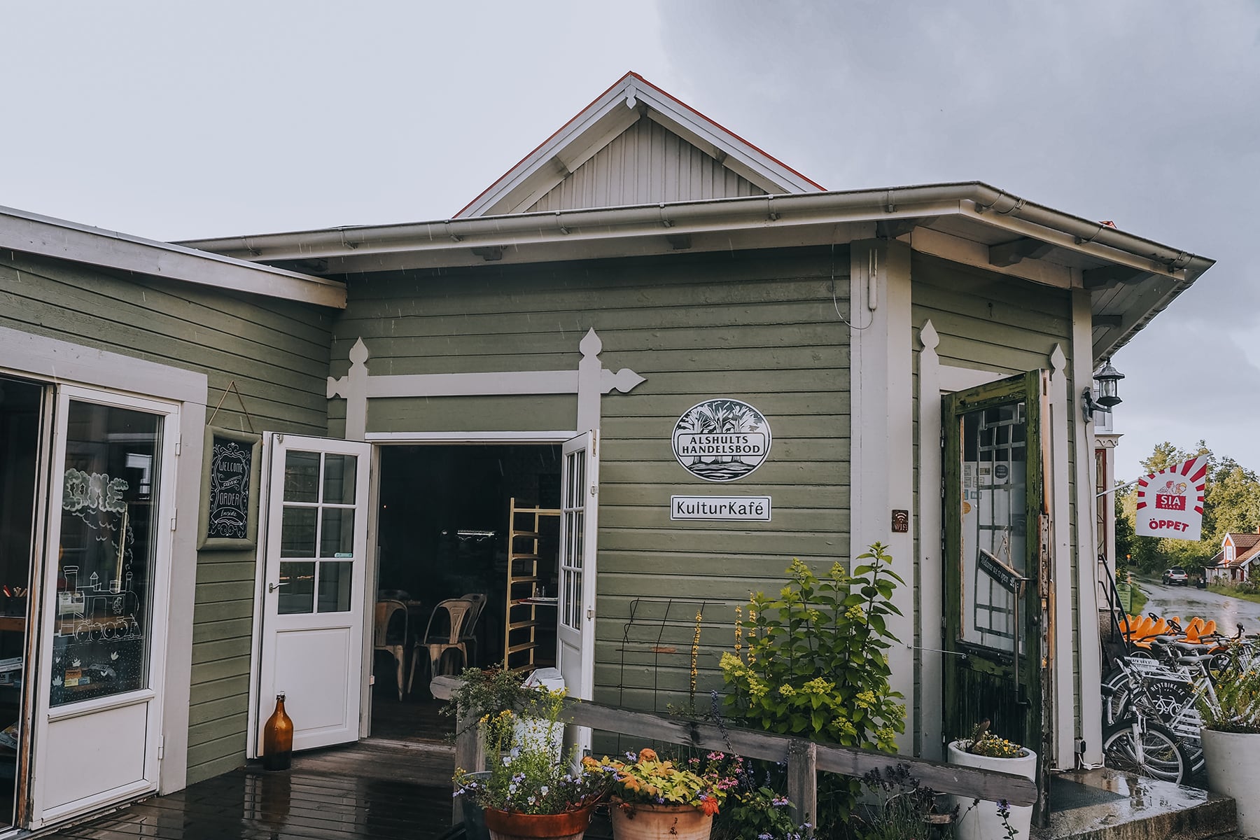 Wenn ihr Lust habt auf schwedische Hausmannskost in besonderem Ambiente habt, empfehlen wir eine Einkehr 10 Minuten Autofahrt entfernt vom Getnö Lake Åsnen Resort. Mit wunderschönem Blick auf den See sitzt ihr auf der Terrasse im Ålshults Handelsbod, das abgesehen von Café/Restaurant auch gleichzeitig Lädchen, Touristeninformation und Kulturcafé ist. Nicht nur die niederländischen Betreiber, sondern auch deren internationales Personal bringt viele Ideen aus unterschiedlichen Kulturen mit. So gibt es bunte Musik- und Poetryabende. Übrigens könnt ihr hier, auf der Wiese direkt am See, auch in einem renovierten Nachtzugwaggon aus den 50er Jahren übernachten!