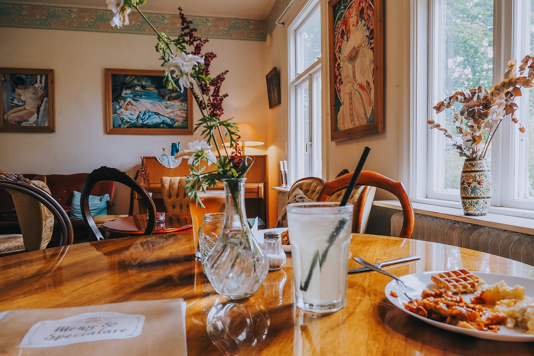 Wenn euch nach, vor oder zwischen zwei Wanderungen im Åsnen Nationalpark der Magen knurrt, kehrt unbedingt ins Kurrebo Café ein! Es liegt traumhaft schön auf einer Anhöhe mit Blick über den Åsnen-See, umgeben von alten Obstbäumen, wilden Blumen und einer angenehm entschleunigten Atmosphäre. Im Garten können die Kinder spielen, im Café sitzt ihr auf liebevoll restaurierten Bauernhofmöbeln wie bei Oma. Es gibt ein leckeres Brunch und Mittagsbuffet mit einer großen Auswahl an vegetarischen und veganen, herzhaften und süßen Leckereien. Die Atmosphäre ist sehr relaxed, ein angenehmes Nebeneinander von Erwachsenen und Kindern in der guten Stube, die sich auf mehrere, miteinander verbundene Räume verteilt.