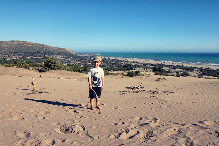 „Die Wüste Sahara“ hat die Jungs, insbesondere Milan, auf unserer Türkei-Rundreise am allermeisten beeindruckt, verständlicherweise. Die Dünen sind so gigantisch, dass man sich wirklich einbilden kann, irgendwo in der Sahara gelandet zu sein (wäre nicht das blaue Meer im Hintergrund). Milan schreibt jedenfalls auf jede Karte „viele Grüße aus der Wüste Sahara“ –so Unrecht hat er nicht. Anfang Juni 2013, als wir dort waren, war der Wind allerdings so extrem, dass man es dort leider nicht so lange aushalten konnte. Der von überall auf uns einpeitschende Sand war schon ziemlich anstrengend. Trotzdem eine einzigartige Erfahrung, unbedingt sehenswert. Hier hat Mato übrigens auch Krabbeln gelernt!!!