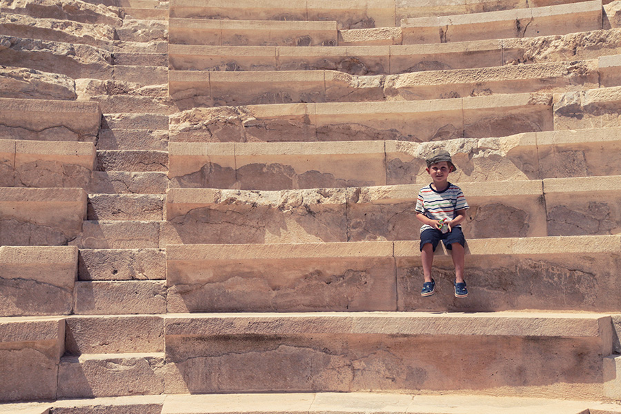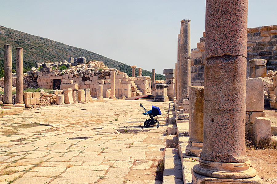 Der Weg zum Strand ist einmalig, denn er führt durch ein sehr gut erhaltenes Ausgrabungsgebiet, das unbedingt einen oder mehrere (da sehr weitläufig!) Besuche wert ist. Durch halb überwucherte Ruinen schlendernd erreichen wir ein erstaunlich gut erhaltenes Amphitheater, die Hauptstraße der bedeutenden alten Hafenstadt Patara ist ebenfalls gut erkennbar, das Areal ist wirklich beeindruckend und auch für kleinere Kinder spannend. Bei einer Rast unter einem Baum bekommen wir Besuch von einer Kuh, die zusammen mit ihrer Herde mitten zwischen den historischen Stätten weidet. Der Weg zum alten Leuchtturm lohnt sich auch. Erstaunlicherweise waren wir an diesem Nachmittag die einigen Besucher weit und breit...Die tägliche Durchfahrt zum Strand ist mit 10er Museumskarte sehr günstig und auf dem Weg durch das Areal entdeckt man auch Landschildkröten, die sich ihren Weg über die Straße bahnen. Hilfe wollen sie aber nicht annehmen: als ich eine Schildkröte von der Straße retten will, faucht sie mich laut an – und ich erschrecke mich fürchterlich.