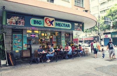 Nach getaner Arbeit setzen wir uns abends in eine offene Eckbar in unserem Viertel, schauen mit den Cariocas, wie sich die Einheimischen nennen, ein Fußballspiel an und bestellen eines der sehr fleischhaltigen Gerichte. Dazu ein kühles Bier bei milden Temperaturen... es ist schön hier.