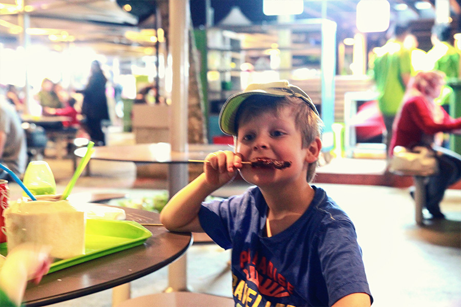 Die Idee, zu Fuß zum Strand zu laufen, endet nach wenigen 100 Metern. In Singapur ist es nicht immer einfach, den direkten Weg zu nehmen. Ein Gewirr aus Schnellstraßen kann einem schnell den Weg versperren. So nehmen wir dann doch ein Taxi und lassen uns an den Strand der East Coast bringen. Dabei fällt auf, dass die East Coast recht lang und es nicht so leicht ist, "unseren" Food Court zu finden. Wir marschieren ordentlich den Strand ab, bis wir ihn tatsächlich finden. East Coast Lagoon - Food Village nennt sich das Areal, an dem man unter freiem Himmel herrlich essen kann. Wir verwöhnen uns mit leckerem Seafood, Saté-Spießen und Nudelsuppen, die Jungs gönnen sich eine frische Kokusnuss. Es ist schön, dass wir es nach 3 Jahren tatsächlich doch nochmal so schnell wieder hier hingeschafft haben.