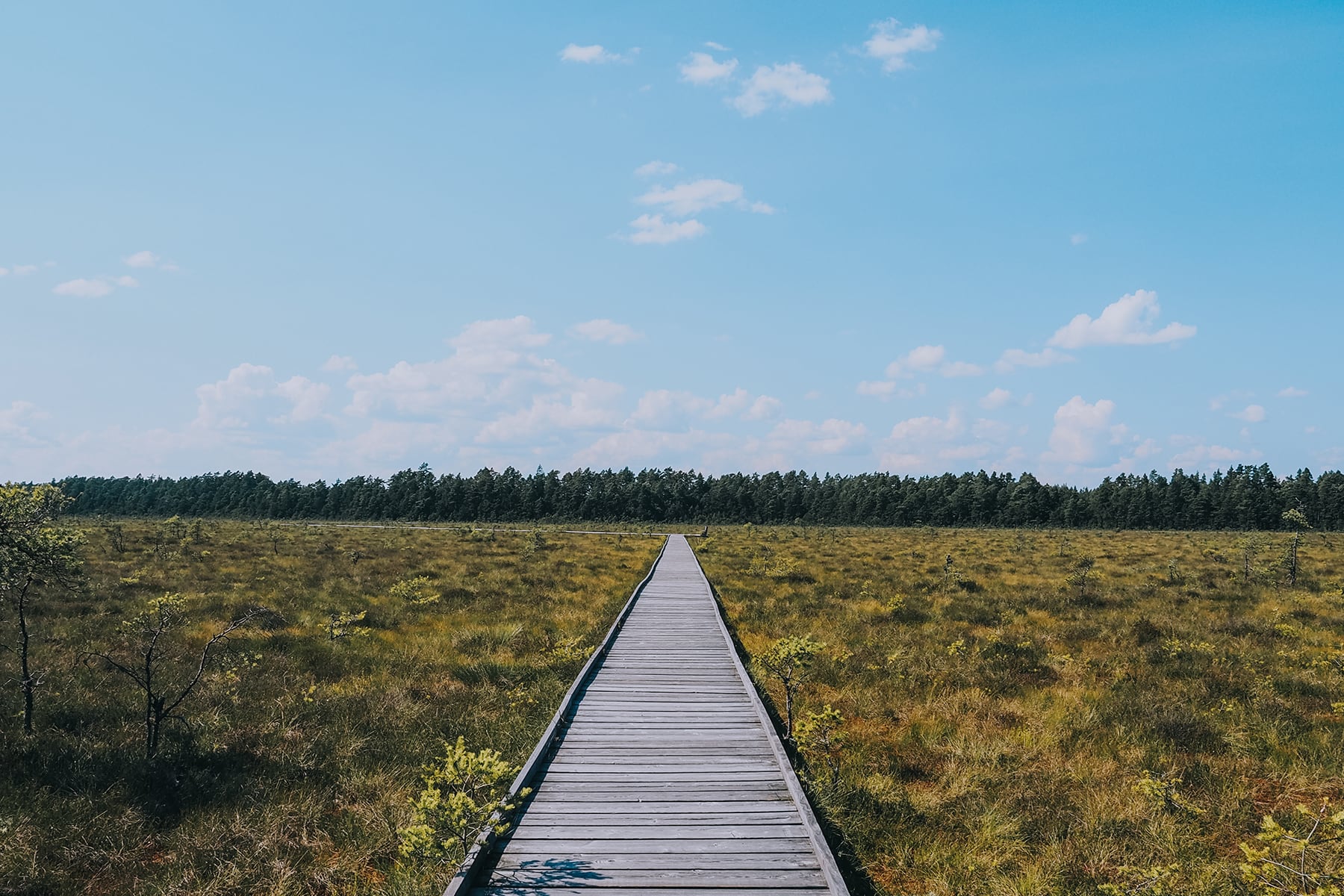 Vom Vandalorum Museum sind es nur noch knapp 20 Minuten Weiterfahrt in Richtung Norden bis zum Store Mosse Nationalpark. Hier treffen wir uns mit Guide André, der mit uns eine Tour durch das Moor macht. André ist eigentlich Schweizer aus Basel, lebt aber schon seit vielen Jahren hier in Småland. Zusammen mit seiner Frau betreibt er nicht nur die beiden Jugendherbergen im Store Mosse Nationalpark, sondern bietet auch deutschsprachige Moorschuhwanderungen an. Wir wussten zuvor noch nicht einmal, dass es Moorschuhe, die man mit Klettverschlüssen unter den eigenen Schuhen befestigt, überhaupt gibt. Die braucht man aber, um nicht im fünf Meter tiefen Moor zu versinken. 8 Hektar ist der Nationalpark groß. Auf Holzstegen führen Wanderwege durchs Moor, die zum Teil sogar barrierefrei sind.