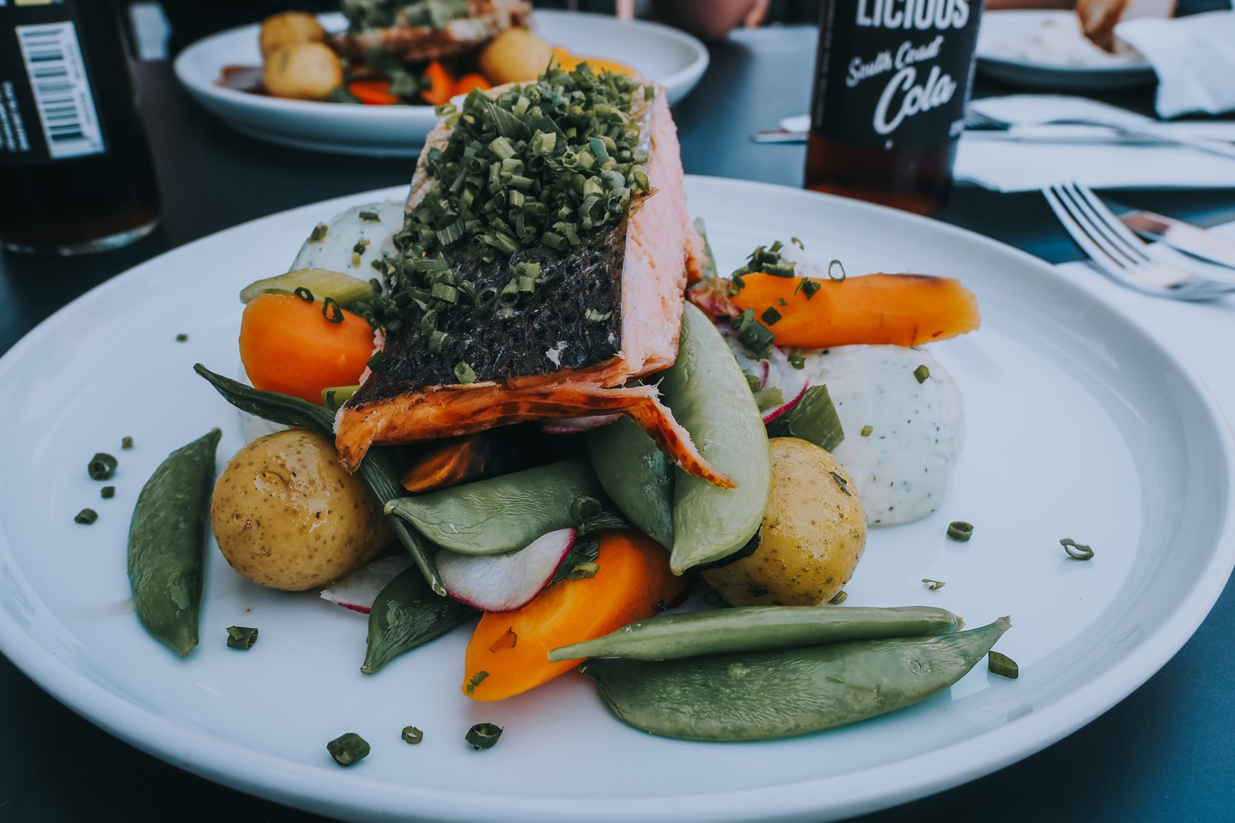 Vom Spa aus sind es nur wenige Meter zum Hestraviken Restaurant auf dem Gelände. Hier sitzt man sehr schön, zugleich schick und gemütlich, das Menu ist äußerst lecker und außergewöhnlich, ich kann mich kaum entscheiden, worauf ich am meisten Lust habe. Zum Nachtisch bestellen die Jungs noch ein selbst gemachtes Stracciatellaeis. Wie im Riverside Spa auch ist das Personal hier ebenfalls sehr freundlich und kinderfreundlich.