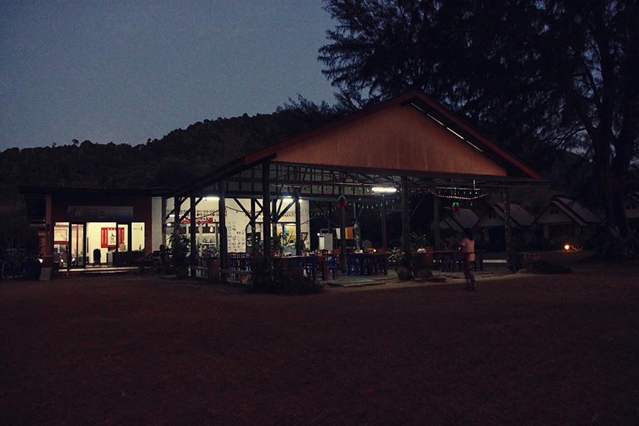 Der Strand, an dem wir die meiste Zeit unseres Aufenthalts hier verbringen, ist wirklich schön und praktischerweise direkt gegenüber gelegen. Wir brechen also nach dem Frühstück auf und suchen uns völlig unbedarft ein nettes Plätzchen unter Bäumen, um dann schwimmen zu gehen. Das hätten wir nicht tun sollen. Zwei andere Gäste, beide Bademeister aus Freiburg, wie sich später heraus stellt, die hier zusammen mit ihren Frauen offenbar jedes Jahr überwintern, weihen uns freundlicherweise ein, dass wir hier nicht einfach seit Jahren residierenden anderen deutschen Rentnern die Plätze wegnehmen können. Hätten sie doch mal besser die Wiese mit ihren Handtüchern markiert. Bei einem anderen Fauxpas (ich weiß schon gar nicht mehr, welchem) werden wir direkter angegangen. Ziemlich unangenehm, dieses Völkchen hier. Auch die andere große Touristengruppe hier, die unzähligen schwedischen Familien (mit jeweils mindestens drei Kindern) fallen uns eher unangenehm auf: Während Eltern unbeteiligt daneben stehen oder sich im Restaurant betrinken, springen Kinder wahlweise auf Tempeln oder auf Milans in stundenlanger Kleinarbeit liebevoll errichteten Sandburgen herum. Auf Milans Weinen verzieht keiner eine Miene. In (positiven) Kontakt mit den schwedischen Familien (Milan hätte es gefreut) kommen wir nicht. Noch nicht einmal ein stummes Anlächeln, wenn man mit gleichaltrigen Kindern direkt nebeneinander am Strand oder im Wasser steht, ist da drin. Wir versuchen, uns die Laune nicht komplett verderben zu lassen, was Dank des gleich nebenan gelegenen „VR Minimart“ ein leichtes ist. Völlig unspektakulär sieht der offene Minimarkt mit einfacher überdachter Terrasse und offener Terrasse zwischen Schatten spendenden Bäumen zum Strand hin aus. Das Essen ist sensationell. Es gibt einfach alles (für die Kinder z.B. mal Omelette oder belegte Baguettes als Alternative zu gebratenen Nudeln oder Reis) und super lecker. Wir essen dort fast täglich, manchmal sogar zweimal und lassen es uns gut gehen mit Meerblick, Platz für die Kinder zum Spielen drum herum und den weltbesten Frucht- und Milchshakes. Das Ganze ist super günstig. Die umstehenden Bungalows werden offenbar auch durch die Familie, die den VR Minimart betreibt, vermietet. Eine Internetseite oder sonstige Möglichkeit einer vorherigen Reservierung gibt es aber offenbar nicht. Und die Bungalows sind ausgebucht. Sonst hätten wir und noch geärgert, dass wir uns nicht hier statt im Boutiquehotel einquartiert haben.